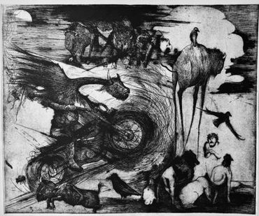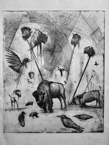 Charles went from Chicago to New Mexico where he established himself within the Eclectic Santa Fe Art Community of the 1960's. He continued to show his work through his Gallery "The Black Kachina" which he established in Santa Fe. Charles married Suzanne, who was a Native Potter, and continued with Exhibitions in both Santa Fe, Taos and Brooklyn NY.